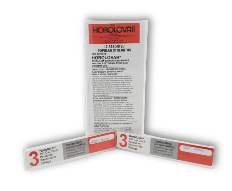 Shop 400 day (anniversary) clock parts, featuring Horolovar temperature-compensating pendulum suspension springs...