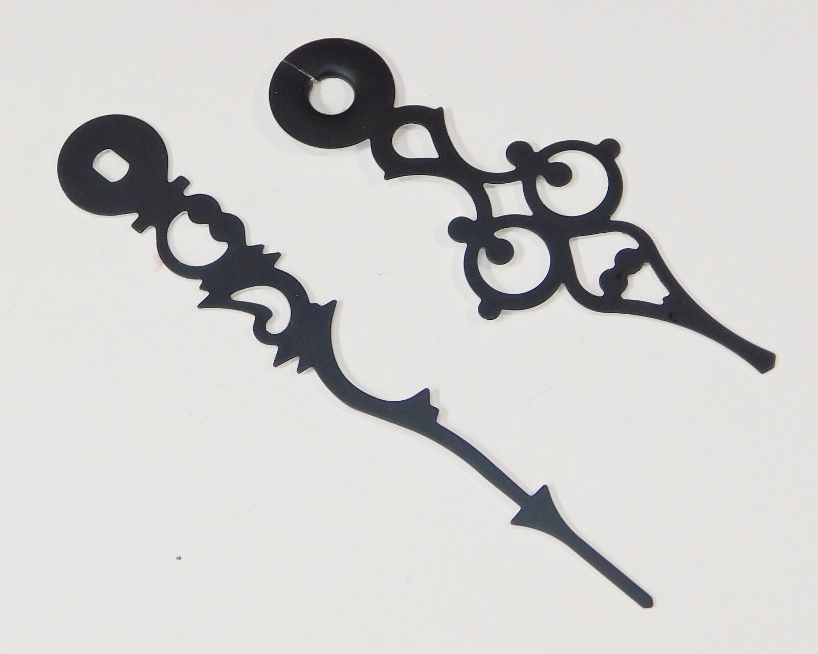 This kit comes with serpentine-style hands. This style is available in 1 3/8", 1 7/8", 2 3/8", 3 1/8", OR 4 1/4" lengths. Hands are black color on one side and white on the other. 1 set of hands per order. Hand length is determined by measuring the minute hand length from the center hole out to the tip of the hand, or from the center hole out on your dial.